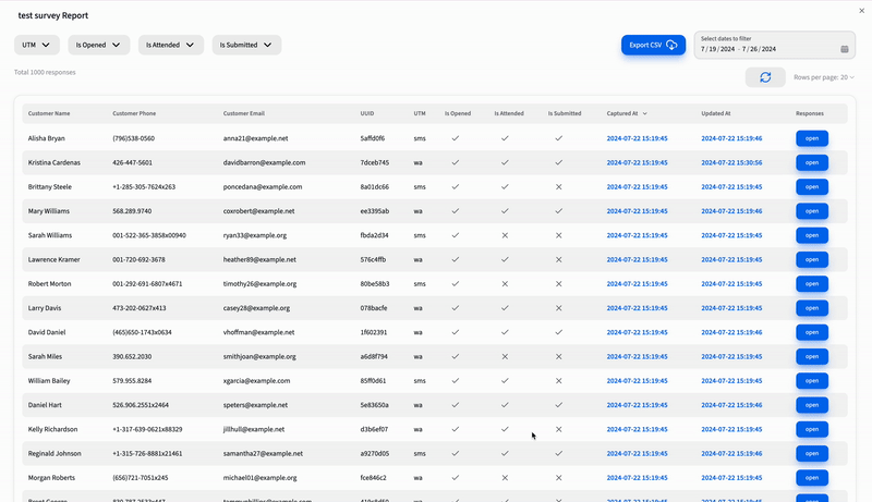 /reports/csvAPI. - Details: This request includes parameters like survey ID, date ranges, and filters.